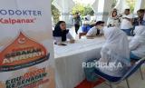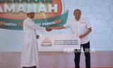 GM Commercial Kalbe Consumer Health Kusnanto Pramono (kanan) menyerahkan secara simbolik bantuan vitaman, obat dan alat penunjang kebersihan kepada Pimpinan pondok Pesantrean Assalafi Al Fitrah Semarang Ustadz Muhammad Nur Hasyim di Semarang, Senin (30/10/2023). PT Kalbe Farma Tbk (Kalbe) melalui anak usaha Kalbe Consumer Health dan brand Kalpanax mengadakan kampanye Gerakan AMANAH (Aksi Muslim Antisipasi Masalah) sebagai kegiatan edukasi kesehatan kulit dan penyerahan donasi obat-obatan dan vitamin. Agenda yang dilakukan di puluhan pesantren di 26 kota di Indonesia ini dalam rangka merayakan Hari Santri Nasional 2023. (FOTO : Dok Republika)