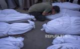 Warga Palestina berduka atas kerabat mereka yang meninggal dalam pemboman Israel di Jalur Gaza, di depan kamar mayat di Deir al Balah, Selasa, (31/10/2023). (FOTO : AP Photo/Fatima Shbair)