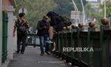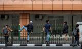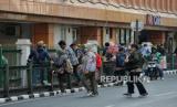 REPUBLIKA.CO.ID, JAKARTA -- Warga melompati pagar pembatas trotoar di kawasan Stasiun Cikini, Jakarta, Selasa (31/10/2023).