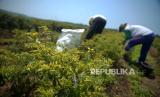 Petani memanen cabai merah besar yang mengering imbas penyakit di Kretek, Bantul, Yogyakarta, Rabu (1/11/2023). Pada panen akhir tahun ini harga cabai cukup menggembirakan bagi petani. Harga cabai merah besar saat ini Rp 20 ribu per kilogram di tingkat petani, sementara di pasar mencapai Rp 40 ribu perkilogram. Namun, di Parangtritis banyak petani yang gagal panen imbas penyakit daun tanaman yang menguning. Biasanya saat musim panen bisa tujuh kali, saat ini bisa empat kali panen sudah bagus. (FOTO : Republika/Wihdan Hidayat)