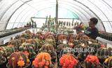 REPUBLIKA.CO.ID,NGAWI -- Petani merawat tanaman kaktus yang dibudidayakan di rumah kaca Thory Cactus, Margomulyo, Ngawi, Jawa Timur, Rabu (1/11/2023).