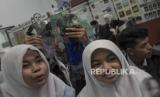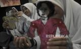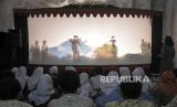 Pelajar menyaksikan pertunjukan wayang dari limbah plastik hasil dari pelatihan di Ruang Temporer Monpera Jabar, Kota Bandung, Jawa Barat, Rabu (1/10/2023). Pelatihan yang dipandu oleh Wayang Tavip tersebut untuk mengampanyekan dan memanfaatkan limbah sebagai produk bernilai ekonomi. Selain itu, pelatihan tersebut untuk membangun kreatifitas pelajar, serta membangun narasi kebudayaan. (FOTO : ABDAN SYAKURA/REPUBLIKA)