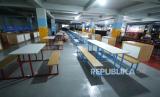Ratusan meja makan baru untuk pedagang kaki lima (PKL) berderet di basemen Alun-alun, Kota Bandung, Rabu (1/11/2023). Pemkot Bandung melakukan penataan PKL dengan membangun ruang dagang di basemen Alun-Alun. Hal itu agar para pengunjung dan pedagang lebih nyaman. Penataan telah mencapai 70 Persen. Rencananya, akan tuntas pada November ini dan akan ditempati 140 PKL. (FOTO : Edi Yusuf/Republika)