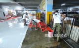 Petugas mengecat lantai salah satu sudut basemen Alun-alun, Kota Bandung, yang akan ditempati pedagang kaki lima (PKL), Rabu (1/11/2023). Pemkot Bandung melakukan penataan PKL dengan membangun ruang dagang di basemen Alun-Alun. Hal itu agar para pengunjung dan pedagang lebih nyaman. Penataan telah mencapai 70 Persen. Rencananya, akan tuntas pada November ini dan akan ditempati 140 PKL. (FOTO : Edi Yusuf/Republika)