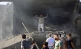 Warga Palestina memeriksa kerusakan bangunan yang hancur akibat serangan udara Israel di kamp pengungsi Jabaliya di pinggiran Kota Gaza, Selasa, (31/10/2023). (FOTO : AP Photo/Abdul Qader Sabbah)