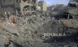 REPUBLIKA.CO.ID, GAZA -- Warga Palestina memeriksa kerusakan bangunan yang hancur akibat serangan udara Israel di kamp pengungsi Jabalia di pinggiran Kota Gaza, Selasa, (31/10/2023).
