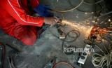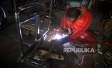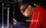 Teknisi difabel, Basuki mengelas tempat roda sespan untuk kendaraan warga difabel di Bengkel Sahabat Difabel, Bantul, Yogyakarta, Rabu (1/11/2023). Bengkel Sahabat Difabel yang dikelola oleh Forum Peduli Difabel Bantul (FPDB) mengerjakan perbaikan atau pembuatan kendaraan ramah difabel serta kursi roda. Untuk sespan kendaraan roda dua biasanya dikerjakan paling lama satu bulan dengan harga mulai dari Rp 4,5 juta. Yang menarik sespan yang dipesan bisa sesuai dengan keinginan pengguna baik ukuran atau desainnya. (FOTO : Republika/Wihdan Hidayat)