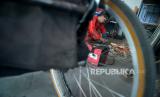 REPUBLIKA.CO.ID, BANTUL. -- Teknisi difabel mengerjakan pembuatan sespan untuk kendaraan warga difabel di Bengkel Sahabat Difabel, Bantul, Yogyakarta, Rabu (1/11/2023).