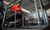 Teknisi difabel mengukur dimensi sespan untuk kendaraan warga difabel di Bengkel Sahabat Difabel, Bantul, Yogyakarta, Rabu (1/11/2023). Bengkel Sahabat Difabel yang dikelola oleh Forum Peduli Difabel Bantul (FPDB) mengerjakan perbaikan atau pembuatan kendaraan ramah difabel serta kursi roda. Untuk sespan kendaraan roda dua biasanya dikerjakan paling lama satu bulan dengan harga mulai dari Rp 4,5 juta. Yang menarik sespan yang dipesan bisa sesuai dengan keinginan pengguna baik ukuran atau desainnya. (FOTO : Republika/Wihdan Hidayat)