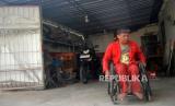 Teknisi difabel, Basuki menggunakan kursi roda untuk beraktifitas di Bengkel Sahabat Difabel, Bantul, Yogyakarta, Rabu (1/11/2023). Bengkel Sahabat Difabel yang dikelola oleh Forum Peduli Difabel Bantul (FPDB) mengerjakan perbaikan atau pembuatan kendaraan ramah difabel serta kursi roda. Untuk sespan kendaraan roda dua biasanya dikerjakan paling lama satu bulan dengan harga mulai dari Rp 4,5 juta. Yang menarik sespan yang dipesan bisa sesuai dengan keinginan pengguna baik ukuran atau desainnya. (FOTO : Republika/Wihdan Hidayat)