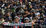 Siswa Sekolah Dasar Islam Al-Husna menghias wajahnya dengan bendera Palestina saat mengikuti Munajat Cinta Dalam Doa Bersama di Monumen Perjuangan Rakyat di Bekasi, Jawa Barat, Rabu (1/11/2023). Kegiatan doa dan penggalangan donasi kemanusiaan tersebut sebagai bentuk solidaritas kepada rakyat Palestina akibat penyerangan Israel sekaligus sebagai pembelajaran bagi siswa akan pentingnya berbagi terhadap sesama. (FOTO : ANTARA FOTO/Suwandy)