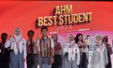 Marketing Director AHM Octavianus Dwi Putro (kiri) didampingi General Manager Corporate Communication AHM Ahmad Muhibbuddin (kanan) berfoto bersama dengan para pemenang AHM Best Student 2023 di Jakarta, Rabu (1/11/2023). Astra Honda Motor Best Student (AHM Best Student) merupakan ajang bergengsi bagi siswa SMA multitalenta di Indonesia untuk mengadu ide dan gagasan menawarkan solusi untuk pembangunan berkelanjutan. Pada tahun ini, AHM mengusung tema Sustainable Development Goals (SDGs) atau tujuan pembangunan berkelanjutan sesuai dengan 3 pilar utama AHM Best Student, yaitu Care, Creative, dan Confident. (FOTO : Dok Republika)