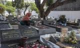 Warga berjalan di dekat makam keluarga Dokter Hasan Sadikin di Kompleks Makam Bupati Bandung, Astanaanyar, Kota Bandung, Jawa Barat, Kamis (2/11/2023). Upacara tabur bunga tersebut sebagai bentuk penghormatan terhadap jasa dan sumbangsih yang telah diberikan oleh Dokter Hasan Sadikin dalam membangun bidang kesehatan di Indonesia. Selain itu, tabur bunga tersebut digelar dalam rangka memperingati Hari Kesehatan Nasional 2023. (FOTO : ABDAN SYAKURA/REPUBLIKA)