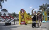 REPUBLIKA.CO.ID,BANDUNG -- Warga berfoto dengan latar belakang ornamen Piala Dunia U-17 di Taman Gedung Sate, Kota Bandung, Jawa Barat, Kamis (2/11/2023).