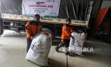 Anggota Disaster Management Center Dompet Dhuafa membawa karung berisi bantuan untuk pengungsi Gaza di Markas DMC Dompet Dhuafa, Pondok Ranji, Tangerang Selatan, Banten, Kamis (2/11/2023). Dompet Dhuafa mengirimkan bantuan berupa 1.000 matras, 660 selimut dan 1.000 selimut bayi untuk pengungsi di Gaza, Palestina, yang akan menghadapi musim dingin di tengah konflik dengan Israel. (FOTO : Republika/Putra M. Akbar)