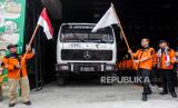 Truk yang membawa bantuan untuk pengungsi Gaza melintas di Markas DMC Dompet Dhuafa, Pondok Ranji, Tangerang Selatan, Banten, Kamis (2/11/2023). Dompet Dhuafa mengirimkan bantuan berupa 1.000 matras, 660 selimut dan 1.000 selimut bayi untuk pengungsi di Gaza, Palestina, yang akan menghadapi musim dingin di tengah konflik dengan Israel. (FOTO : Republika/Putra M. Akbar)
