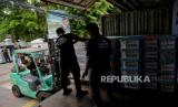 Petugas mengangkut logistik untuk bantuan kemanusiaan Palestina di Kantor Pusat Baznas, Jakarta, Kamis (2/11/2023). Badan Amil Zakat Nasional (Baznas) RI mendistribusikan bantuan logistik berupa kebutuhan pangan, sandang dan sejumlah obat-obatan untuk warga Palestina sebanyak 21 ton atau senilai Rp5,5 miliar. Menurut Pimpinan Baznas RI, Saidah Sakwan memastikan bantuan kemanusiaan tersebut akan diterima oleh warga Palestina setelah pihak Kementerian Luar Negeri berkoordinasi dengan UNRWA di Palestinan dan akan dikirim melalui pintu Rafah. Bantuan kemanusian tersebut akan secara resmi dilepas Presiden Joko Widodo pada Sabtu 4 November 2023 di Bandara Internasional Halim Perdanakusuma. (FOTO : Republika/Thoudy Badai)