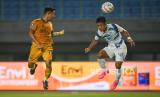 Pesepak bola PSIS Semarang Fredyan Wahyu Sugiyantoro (kanan) berebut bola dengan pesepak bola Bhayangkara Presisi Indonesia FC Sani Rizki (kiri) dalam laga putaran kedua Liga 1 2023-2024 di Stadion Patriot Chandrabhaga, Bekasi, Jawa Barat, Kamis (2/11/2023). (FOTO : ANTARA FOTO/Aditya Pradana Putra)