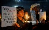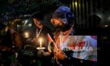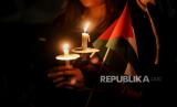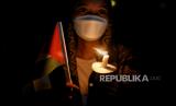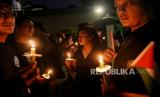 Sejumlah elemen masyarakat menyalakan lilin saat mengikuti aksi damai Bela Palestina di Kedutaan Besar Palestina, Jakarta, Kamis (2/11/2023). Aksi yang digelar oleh berbagai elemen masyarakat tersebut sebagai bentuk solidaritas dan dukungan kepada rakyat Palestina dalam menghadapi konflik (FOTO : Republika/Thoudy Badai)