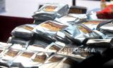 Barang bukti keripik singkong narkoba siap edar ditampilkan saat pengungkapan kasus rumah kontrakan produksi narkoba berbentuk keripik dan tetes di Banguntapan, Bantul, Yogyakarta, Jumat (3/11/2023). Sebanyak delapan orang tersangka beserta barang bukti 426 bungkus keripik singkong, 2.022 botol happy water, 10 kilogram bahan baku narkoba, dan alat pembuatnya diamankan petugas dari tiga lokasi yakni Yogyakarta, Cimanggis, dan Magelang. (FOTO : Republika/Wihdan Hidayat)