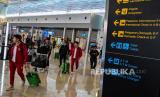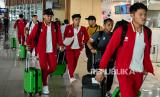 REPUBLIKA.CO.ID, BANTEN -- Sejumlah pesepak bola timnas Indonesia U-17 berjalan menuju pintu masuk ke pesawat tujuan Surabaya di Bandara Soekarno Hatta, Tangerang, Banten, Jumat (3/11/2023).