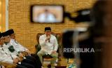 Bakal calon wakil presiden Koalisi Perubahan Muhaimin Iskandar menyampaikan sambutan saat menerima kunjungan dari mantan Ketua Umum PP Muhammadiyah Din Syamsuddin bersama perwakilan ormas islam di Kantor DPP PKB, Jakarta, Jumat (3/11/2023). Pertemuan tersebut dalam rangka silaturahmi sekaligus memberikan dukungan kepada bakal capres dan cawapres Koalisi Perubahan Anies Baswedan dan Muhaimin Iskandar pada Pilpres Pemilu 2024. (FOTO : Republika/Thoudy Badai)