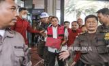 REPUBLIKA.CO.ID, JAKARTA -- Anggota III Badan Pemeriksa Keuangan Republik Indonesia (BPK RI), Achsanul Qosasi (tengah), berjalan menuju mobil tahanan seusai ditetapkan sebagai tersangka di Kejaksaan Agung, Jakarta, Jumat (3/11/2023).