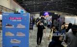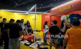 Pengunjung bermain di salah satu stan pada saat acara pameran fashion dan lifestyle USS 2023 di Jakarta Convention Center, Jakarta, Sabtu (4/11/2023). Sebanyak lebih dari 200 brand lifestyle produk lokal hingga luar negeri hadir dalam gelaran USS 2023 kali ini, dengan menyajikan beragam promo bagi pecinta sneaker. Gelaran pameran fashion dan lifestyle tersebut berlangsung dari tanggal 3-5 November mendatang. (FOTO : Republika/Thoudy Badai)