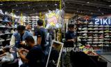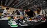 Pengunjung memilah produk sneaker pada saat acara pameran fashion dan lifestyle USS 2023 di Jakarta Convention Center, Jakarta, Sabtu (4/11/2023). Sebanyak lebih dari 200 brand lifestyle produk lokal hingga luar negeri hadir dalam gelaran USS 2023 kali ini, dengan menyajikan beragam promo bagi pecinta sneaker. Gelaran pameran fashion dan lifestyle tersebut berlangsung dari tanggal 3-5 November mendatang. (FOTO : Republika/Thoudy Badai)