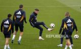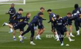 REPUBLIKA.CO.ID, MADRID. -- Para pemain Real Madrid melakukan pemanasan saat sesi latihan tim di Madrid, Spanyol, Sabtu (4/11/2023).