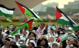 Puluhan Bendera Palestina Berkibar Saat Aksi di Monas