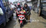 REPUBLIKA.CO.ID,BEKASI -- Prajurit TNI membantu pengendara motor saat melintasi banjir di Jalan Raya Pisangan, Desa Satria Jaya, Tambun Utara, Kabupaten Bekasi, Ahad (5/11/2023).