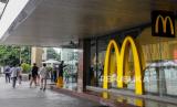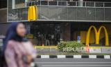 Warga berjalan dekat gerai McDonalds yang kembali beroperasi di Jalan MH Thamrin, Jakarta, Ahad (5/11/2023). Gerai makanan cepat saji McDonalds dan Starbucks kembali beroperasi pasca Aksi Damai Aliansi Rakyat Indonesia Bela Palestina yang digelar di Monas. (FOTO : Republika/Putra M. Akbar)