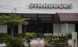 Warga berjalan di dekat gerai Starbucks yang kembali beroperasi di Jalan MH Thamrin, Jakarta, Ahad (5/11/2023). Gerai makanan cepat saji McDonalds dan Starbucks kembali beroperasi pasca Aksi Damai Aliansi Rakyat Indonesia Bela Palestina yang digelar di Monas. (FOTO : Republika/Putra M. Akbar)