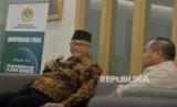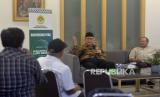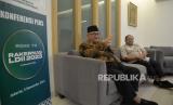 Ketum DPP LDII KH Chriswanto Santoso (kiri) didampingi Sekum DPP LDII Dody Taufik Wijaya memberikan keterangan terkait pelaksanaan Rakernas LDII 2023 di Kantor DPP LDII, Jakarta, Ahad (5/11/2023). (FOTO : Republika/Prayogi)