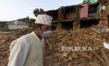 A man walks past a damaged house in Khalanga, a headquater of Jajarkot, Nepal, 05 November 2023. The death toll from the 6.4 magnitude earthquake that hit Jajarkot and West Rukum districts has reached 157, the Ministry of Home Affairs announced on 04 November.