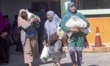 REPUBLIKA.CO.ID, BATAM -- Warga membawa beras bantuan pangan cadangan pemerintah dalam penyaluran tahap kedua di Kantor Pos Batam Centre, Batam, Kepulauan Riau, Senin (6/11/2023).
