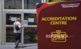 Jurnalis berjalan memasuki ruang accreditation centre di Kompleks Stadion Si Jalak Harupat, Kabupaten Bandung, Jawa Barat, Senin (6/11/2023). FIFA mulai membuka pusat akreditasi di empat stadion untuk pengambilan kartu akreditasi Piala Dunia FIFA U-17 mulai 4 November hingga 2 Desember. Sementara itu, Penjabat Gubernur Jawa Barat Bey Triadi Machmudin menyatakan semua lapangan di Bandung Raya telah siap 100 persen digunakan untuk perhelatan tersebut. (FOTO : REPUBLIKA/ABDAN SYAKURA)