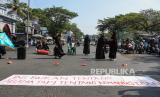 Sejumlah mahasiswa UKM Seni dan Budaya Talas Universitas Muhammadiyah Makassar melakukan aksi teatrikal peduli Palestina di Makassar, Sulawesi Selatan, Senin (6/11/2023). Aksi teatrikal dan deklamasi puisi dengan tema Ini Bukan Tentang Agama, Tapi Ini Tentang Kemanusiaan tersebut sebagai bentuk kepedulian terhadap warga Palestina yang mengalami penderitaan akibat gempuran Israel. (FOTO : Antara/Arnas Padda)