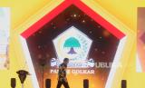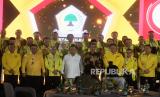 REPUBLIKA.CO.ID,JAKARTA -- Ketua Umum Partai Golkar Airlangga Hartarto (kanan) dan Bacapres Koalisi Indonesia Maju Prabowo Subianto menyampaikan sambutan saat peringatan HUT Partai Golkar di Jakarta, Senin (6/11/2023).