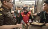 REPUBLIKA.CO.ID, PALEMBANG -- Petugas menggiring tersangka kasus korupsi seusai menjalani pemeriksaan di kantor Kejaksaan Tinggi (Kejati) Provinsi Sumatra Selatan di Palembang, Senin (6/11/2023).