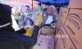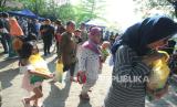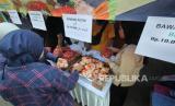 Warga membeli kebutuhan pokok saat kegiatan Gerakan Pangan Murah (GPM) di halaman Kantor Kecamatan Gedebage, Kota Bandung, Selasa (7/11/2023). Berbagai komoditas pangan dengan harga lebih murah hadir pada acara tersebut. Mulai dari beras SPHP Rp53.000/5 kg, minyaKita Rp13.500/1 liter, ayam Rp31.000/1 ekor, telur ayam Rp25.500/1 kg, cabai rawit Rp70.000/1 kg dan aneka sayuran serba Rp5.000. GPM merupakan strategi Pemkot Bandung untuk mengendalikan harga stok pangan agar terjangkau oleh masyarakat. (FOTO : Edi Yusuf/Republika)