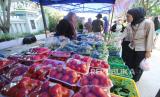 Pj Gubernur Jawa Barat Bey Machmudin dan Pj Wali Kota Bandung Bambang Tirtoyuliono serta pejabat terkait meninjau kegiatan Gerakan Pangan Murah (GPM) di halaman Kantor Kecamatan Gedebage, Kota Bandung, Selasa (7/11/2023). Berbagai komoditas pangan dengan harga lebih murah hadir pada acara tersebut. Mulai dari beras SPHP Rp53.000/5 kg, minyaKita Rp13.500/1 liter, ayam Rp31.000/1 ekor, telur ayam Rp25.500/1 kg, cabai rawit Rp70.000/1 kg dan aneka sayuran serba Rp5.000. GPM merupakan strategi Pemkot Bandung untuk mengendalikan harga stok pangan agar terjangkau oleh masyarakat. (FOTO : Edi Yusuf/Republika)