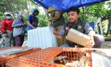 Petugas menyiapkan anak ayam sebagai bonus bagi warga membeli kebutuhan pokok saat kegiatan Gerakan Pangan Murah (GPM) di halaman Kantor Kecamatan Gedebage, Kota Bandung, Selasa (7/11/2023). Berbagai komoditas pangan dengan harga lebih murah hadir pada acara tersebut. Mulai dari beras SPHP Rp53.000/5 kg, minyaKita Rp13.500/1 liter, ayam Rp31.000/1 ekor, telur ayam Rp25.500/1 kg, cabai rawit Rp70.000/1 kg dan aneka sayuran serba Rp5.000. GPM merupakan strategi Pemkot Bandung untuk mengendalikan harga stok pangan agar terjangkau oleh masyarakat. (FOTO : Edi Yusuf/Republika)