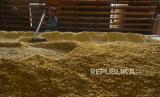 Perajin mengeringkan kacang kedelai di salah satu industri kecil menengah (IKM) tempe dan tahu, di kabupaten Aceh Besar, Aceh, Selasa (7/11/2023). Asosisiasi Perajin Tahu dan Tempe di daerah itu menyatakan harga kacang kedelai impor yang terus naik dan saat ini sudah mencapai Rp12.800 per kilogram mengakibatkan usaha mereka sulit bertahan dan berharap pemerintah dapat memberikan subsidi harga kedelai untuk perajin dan koperasi. (FOTO : Antara/Ampelsa)