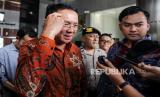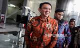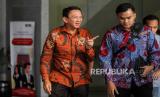 Komisaris PT Pertamina Basuki Tjahaja Purnama atau Ahok usai menjalani pemeriksaan di Gedung KPK, Jakarta, Selasa (7/11/2023). KPK memeriksa Ahok selama 6,5 jam sebagai saksi terkait kasus dugaan korupsi pengadaan gas alam cair atau Liquefied Natural Gas (LNG) Pertamina untuk tersangka Mantan Direktur Utama Pertamina Karen Agustiawan. (FOTO : Republika/Putra M. Akbar)