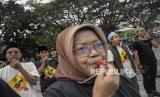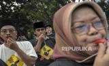 REPUBLIKA.CO.ID,BANDUNG -- Massa yang tergabung dalam Forum Masyarakat Sipil Jawa Barat melakukan aksi Meniup Peluit Bagi Indonesia di Cikapundung River Spot, Kota Bandung, Jawa Barat, Selasa (7/11/2023).