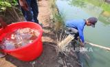 REPUBLIKA.CO.ID, BANDUNG -- Petugas Dinas Sumber Daya Air dan Bina Marga (DSDABM) melepas ikan di kolam retensi Rancasari saat persemian di Jalan Inten Raya, Kecamatan Rancasari, Kota Bandung, Rabu (8/11/2023).