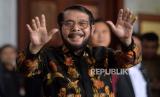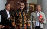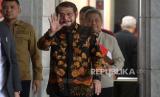 Mantan Ketua Mahkamah Konstitusi (MK) Anwar Usman sebelum memberikan keterangan terkait hasil putusan Majelis Kehormatan Mahkamah Konstitusi (MKMK) di Gedung MK, Jakarta, Rabu (8/11/2023). Dalam kesempatan tersebut Anwar Usman merasa difitnah dalam penanganan perkara Nomor 90/PUU-XXI/2023 tentang batas usia capres-cawapres di Mahkamah Konstitusi (MK). Dia menyebut fitnah itu keji dan sama sekali tidak berdasarkan atas hukum dan fakta. (FOTO : Republika/Prayogi)