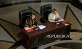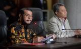 Mantan Ketua Mahkamah Konstitusi (MK) Anwar Usman memberikan keterangan terkait hasil putusan Majelis Kehormatan Mahkamah Konstitusi (MKMK) di Gedung MK, Jakarta, Rabu (8/11/2023). Dalam kesempatan tersebut Anwar Usman merasa difitnah dalam penanganan perkara Nomor 90/PUU-XXI/2023 tentang batas usia capres-cawapres di Mahkamah Konstitusi (MK). Dia menyebut fitnah itu keji dan sama sekali tidak berdasarkan atas hukum dan fakta. (FOTO : Republika/Prayogi)